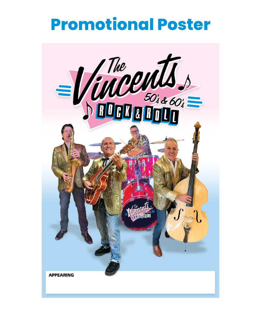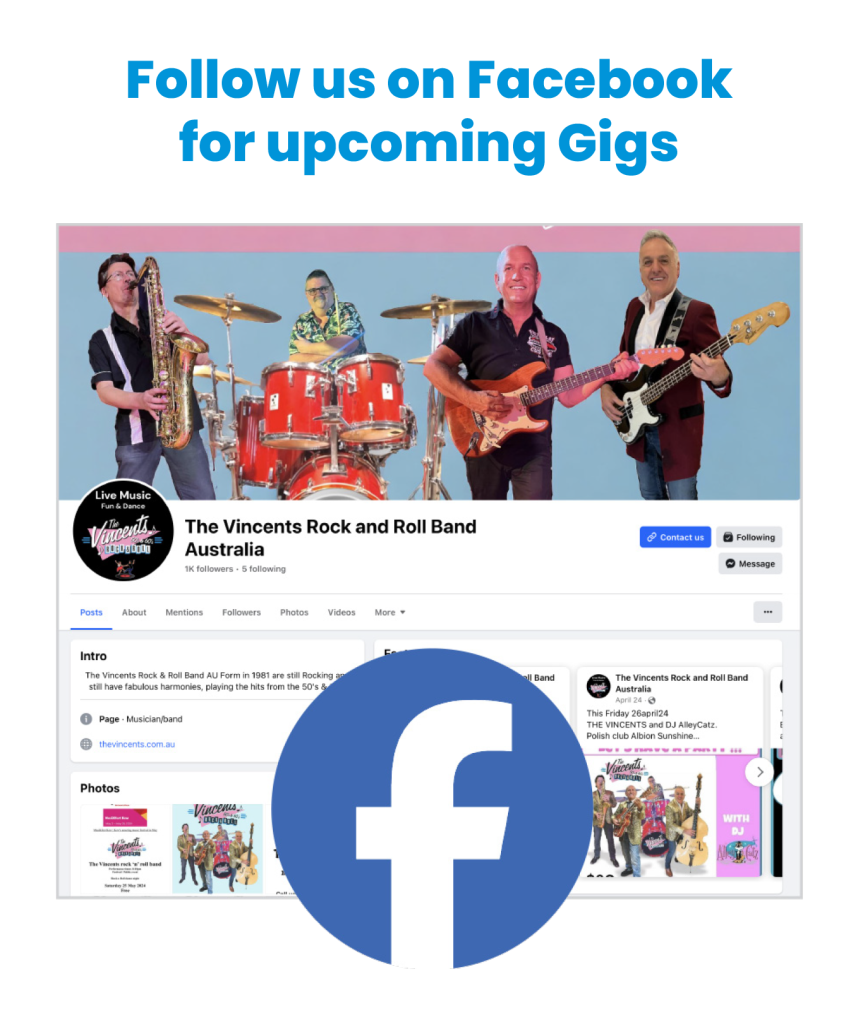 THE VINCENTS have been entertaining since the early 80’s and have been considered one of the best rock ‘n’ roll bands around. We know how to keep the dance floor full, playing popular songs from big name artists such as: The Shadows, Roy Orbison, Elvis, The Beatles, Beach Boys, Carl Perkins, Everly Brothers and many more…